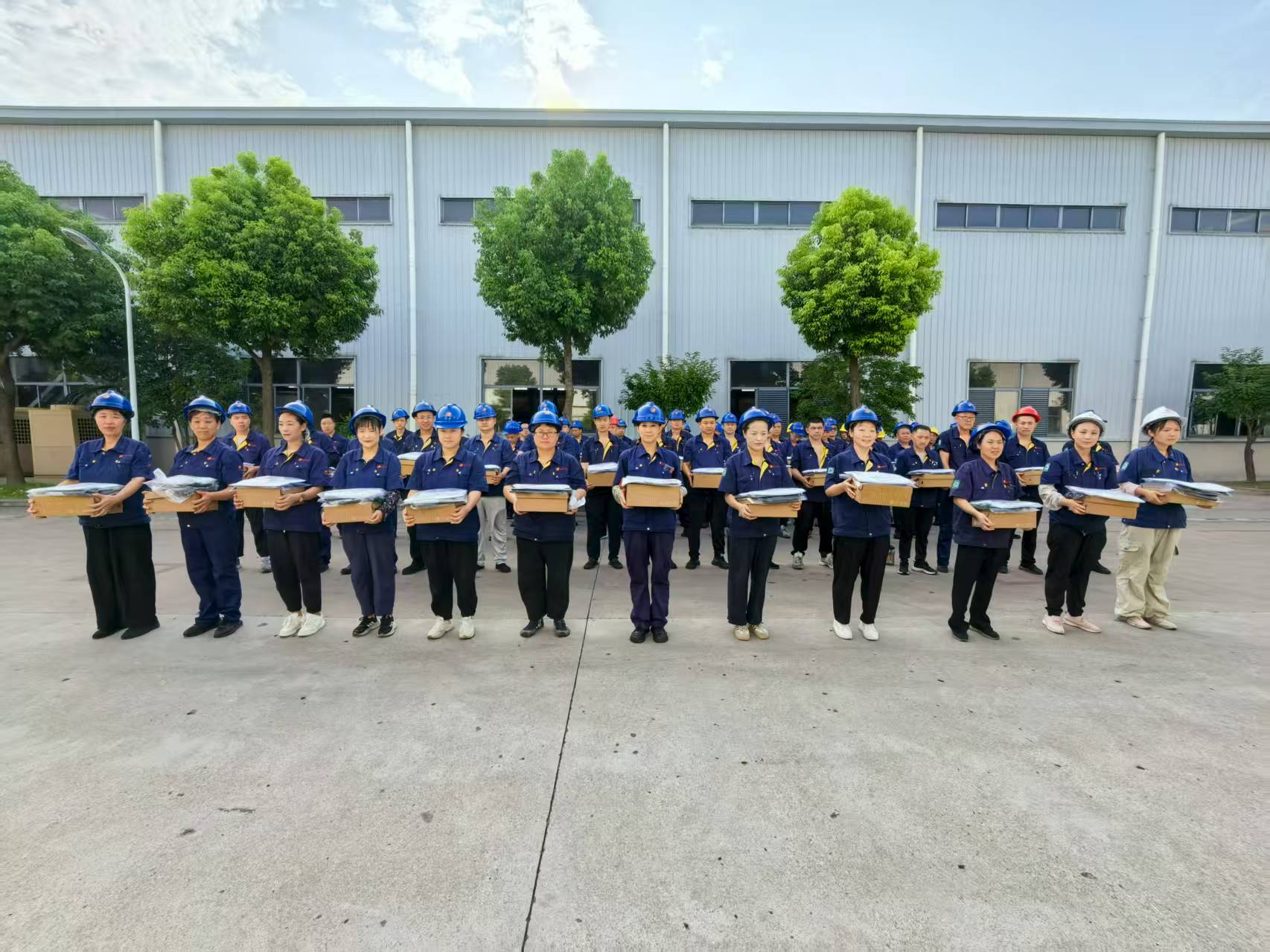 三伏盛夏,烈日如炙。面对持续高温带来的极大“烤”验,全体员工以敬业的态度和热忱的状态始终坚守岗位,这份付出,公司铭记于心。为守护员工健康、保障安全生产,在提供盐汽水、冰棒、饮料、绿豆汤、藿香正气水等基本防暑降温措施的基础上,为致敬高温下坚守岗位的全体员工,公司为每一位员工精心准备了夏季套装福利,用清凉衣物传递关怀温度,以实际行动为员工撑起一把夏日里的“清凉伞”。